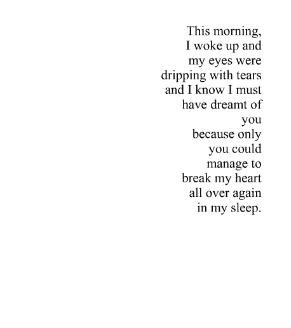 "I wrote a poem about it, and then threw it away, because that’s the last thing I need right now:..."