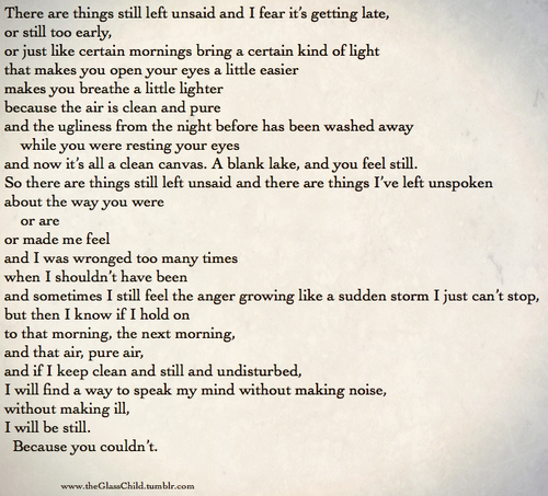 “I wrote a poem about it, and then threw it away, because that’s the last thing I need right now: More words dedicated to people who will never dedicate a single thing to me.”