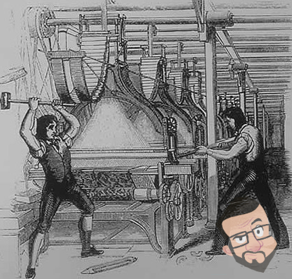 E pra fechar: você já ouviu o termo “ludita“? Não parece ser muito comum no Brasil. A palavra é uma tradução de “luddite“, que eram os trabalhadores da indústria téxtil inglesa do século 19. Os caras se tornaram infames por atacar e até mesmo destruir teares mecânicos, por temer a ameaça que esta tecnologia representava ao seu meio de vida.