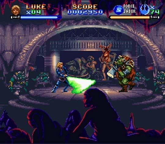 Os games da série Star Wars pro SNES se destacam por serem excelente jogos de plataformas baseados numa licença de filme, algo relativamente raro na indústria. Nem todo filme serve como adaptação pra jogo, e por causa disso você acaba visitando cenários e enfrentando bichos que nada tem a ver com a trama original. Talvez pela densidade do universo do George Lucas, isso acabou não sendo um problema quando converteram a saga pros jogos eletrônicos.