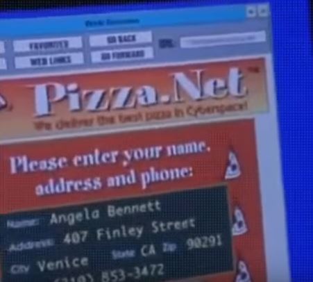 Comprar comida. Logo no começo do filme, a Angela despista o convite de um maluco que a chama pra jantar dizendo que “já tem planos”, e prossegue a pedir uma pizza no incrivelmente inexistente “Pizza.net”.