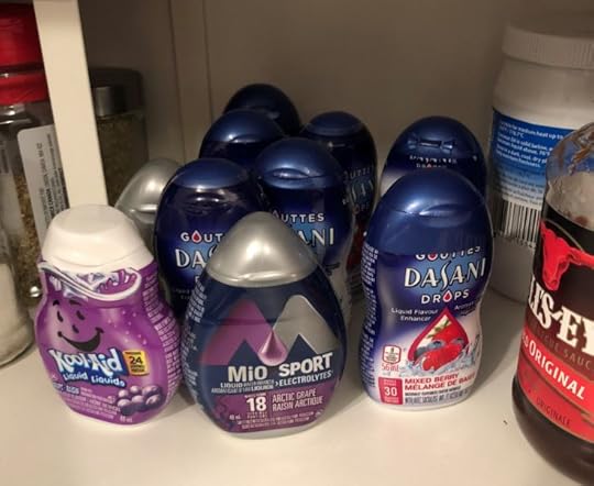 A propósito, creio que isso aí não é comum no Brasil. É uma espécie xaropinho pra deixar a água com sabor, com muito menos calorias do que suco ou refrigerante teria (zero, pra ser específico).