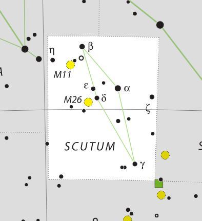 NA REALIDADE, o nome não é nem tanto porque isso aí lembra um escudo, e sim porque o seu descobridor, o astrônomo polonês Johannes Hevelius, queria mandar um salve pro rei John III Sobieski — que havia no ano anterior ganhado a Batalha de Viena. O cara queria pagar um pau pro monarca, e não tinha com dizer que esse losângulo parecia com o rei sem ir pra guilhotina, então ele falou “ahhh… é o ESCUDO dele então, pronto!”, o que não me faz qualquer sentido porque esses ângulos de Scutum remetem muito mais a uma espada do que a um escudo.