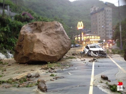 [ Vídeo chocante ] Eita! Pedra imensa se solta de montanha e quase mata uns japas!