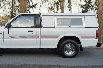 Our truck was the same as this, only blue. We gave it away after Fred stopped driving. On a sunny August afternoon, I crawled into the shell on the back of our old Mazda pickup. In 12 years, I had never gone in there except to get something, the ridged truck bed bruising my knees. But now, sun-cooked and pooped from washing the new car, I opened the hatch, scooted toward the cab and lay back.