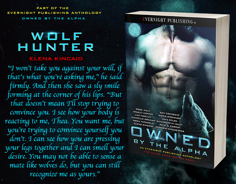 Thea has spent years trying to find a way to stop her sister’s would-be captors, even at the expense of having her own life. When a sexy alpha wolf shows up just in the nick of time to assist her, she fears falling for the man who wants to own her body and soul. But will she be able to walk away from him once the job is done and more importantly, wonders if he will actually let her go.