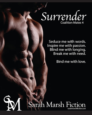 Thanks so much for having me on today, Surrender is the fourth book in my Coalition Mates series and it releases mid- October. I have a little teaser for you, I hope you enjoy!Blurb: Surrender: Coalition Mates 4 Seduce me with words.Inspire me with passion.Blind me with longing.Break me with need.