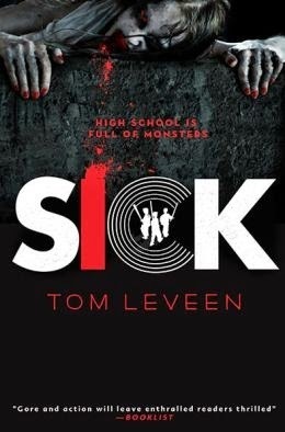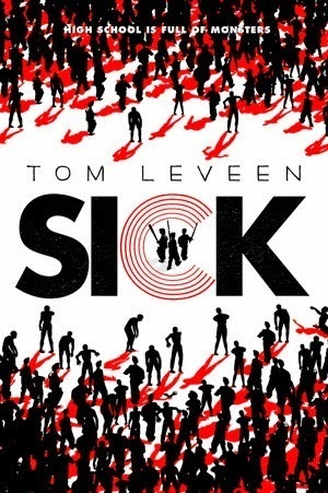 Sick by Tom Leveen is getting a new look in paperback that doesn't do it better nor worse than the original. This is a zombie apocalypse story, set in a high school. The original cover on the left gets at that pretty well. I love the fact it's only black, red, and white. It's stark, and at the same time, it's a little bit funny (because this book is a little bit funny, even though it's horror). The font for the title works, and I dig how the "C" is in a different font than the rest of the letters, and the three boys wielding weapons are centered within it, somewhat protected but somewhat vulnerable, since a "C" isn't a closed letter. This cover skews on the younger end of YA for me, which isn't necessarily a bad thing, and for younger teen readers who want a zombie story, I think this one is fine. This cover works.
