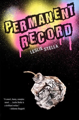 Leslie Stella's Permanent Record is a book I talked about a little over a year ago when a few of us did a read along to Robert Cormier's The Chocolate War, as it's a great read alike. The original cover, though, would not tell you that, nor would it tell you anything, really, about the content of the story. Is it a book about tagging? Graffiti? About paper bombs? Explosions? Even the blurb on the cover indicates nothing: "A smart, funny, complex novel . . . Leslie Stella is a brilliant writer." To the average browser, this means nothing. To even the more well-read, that blurb tells you nothing except it's supposed to be a smart, funny, and complex book. But what is it?