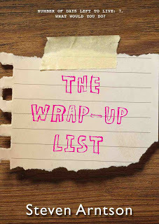 The paperback redesign on the right is also simplistic, but the addition of the tag line actually adds a lot to explaining what the story is about. This is a story about someone coming to terms with the end of their life! The wrap-up list then likely refers to the things they're hoping to "wrap up" before they don't have the time to do so any longer. The paperback also seems to "age" the book into a category a little bit more, too: it's a torn piece of notebook paper, and the title itself is handwritten in pen. The note looks like it's taped on the top of a student test. It's a book meant for teen readers.
