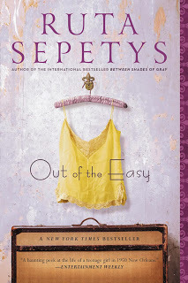 One of the things that made Out of the Easy's hardcover stand out to me was the color. It's a couple of shades of really stand-out green, and it's easy to spot on shelves. The cover image itself isn't necessarily the most memorable, though. The girl looking at the bird cage fits the story (in a metaphoric sense), but I don't know if it's an iconic cover overall. It does, however, say this is a YA book. What's interesting to pay attention to on the hardcover is what's pulled out. The author's name is large and noticeable, as is the title. But what caught my eye was that it notes she's a New York Times Bestselling author. Hold that for a minute.