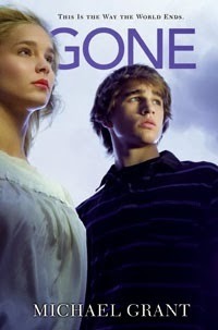 Michael Grant's Gone series is getting a new makeover in paperback. Right now, the paperback editions of the hardcover books have the same cover, but with the publication of the final book in the series, the paperbacks are going in a new direction. So on the left, the hardcover edition of Gone, the first in the series. It's a fairly generic -- and I'll even say unattractive -- cover. Two people looking in the distances. They don't really have anything memorable about them. But I'd say if anything, the original cover is gender neutral, even if it doesn't tell you anything about the book itself. There is a tagline on the hardcover, "This is the way the world ends," but that tag line in the original paperback edition changes. It's instead a pull quote from a Booklist review. Later books in the series don't have a tag line, but a pull quote from Stephen King.