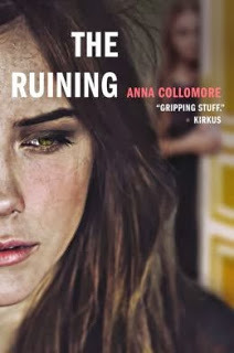 The paperback edition of Collomore's The Ruining will be available February 6, 2014. And it's completely different than the original cover: there's a closeup of a girl who looks way, way older than a teenager. She's clearly upset about something, and she looks slightly off. It's a memorable facial expression, for sure. There's a girl in the background, too, though little could be said about her expression nor of her body language because she's so far back. Is she turning a light switch on or off? Is she just holding the wall to stay standing up? I like the pop of yellow and white that the wall brings to the cover, and I think that the pink used for the author's name stands out nicely, too. But the title itself seems to get lost in this image in a way that doesn't make the image stand out. It's just easy to overlook. There's a pull quote from a Kirkus review, too: "gripping stuff." I don't know how much that tells anyone anything about the book, nor do I think it helps give the cover something new or different, either.