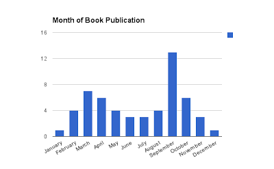 The leader of the pack this year is September -- thirteen of the books on this year's "best of" lists were published that month. March had the second highest number of books on the lists, with 7, followed by October and April with six each.