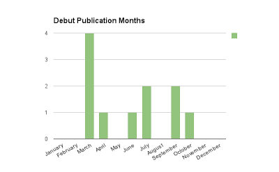 What about the month of publication for those debut authors? Was there a better month to be a debut author and end up on the "best of" lists?