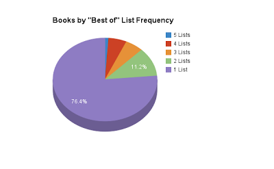 In 2012, here's what the frequency of books on the "best of" books looked like: