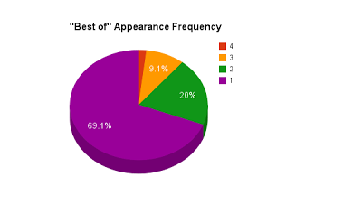 To wrap up the data, let's look at a simple but worthwhile aspect: do series books do better or worse than stand alone titles on the "best of" lists? This is, I think, impacted pretty significantly by genre of the "best of" books this year, since realistic fiction tends to produce fewer series books than other genres.
