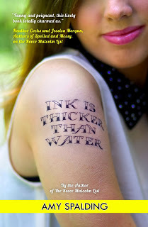 Amy Spalding's Ink Is Thicker Than Water is an excellent example of a true YA novel. It's coming-of-age, but it's coming-of-age through a perspective that's quite minute and not world-shattering. What Kellie is going through and experiencing is entirely within the contours of her own life and her own experiences. She's navigating a tricky situation in her family life, a change in what she thought were forever friendships, and an opportunity to pursue a romance with a boy who she thought would never again be a part of her life. Despite the fact none of the things that happen impact the greater world, they each play a huge part in impacting Kellie's own world. And each of the things she encounters leads to her coming to better understand her role in her own life and in the lives of those around her -- as well as her role in the greater world.