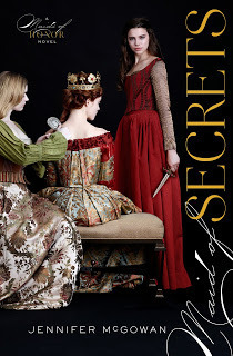 Jennifer McGowan's Maid of Secrets is getting one of those makeovers I'm not sure I completely understand. On the left is the original hardcover. It's not necessarily the kind of cover that stands out, but it also speaks to the content of the book. The girl has a great look on her face, including a fierceness in her eyes with just enough of a smile that it's not a scary look. I love the dagger in her hands, since it offers up a little bit of an idea of the time frame of the story and even a little bit about what may be at stake. The font for the title isn't necessarily memorable, but it works with the image to allow that image to stand out. And note that there is a blurb on the cover -- a simple "Winning," from Robin LaFevers, who is probably the perfect name to have gracing the cover of a book like this with a blurb. In many ways, I'd say the look of this particular cover suggests it's a worthwhile read alike to LeFevers's own series. I'm a big fan of cover alikes, since it does a lot of service to readers who want a book like one they've read before but don't necessarily want to ask for help. It's passive and easy.