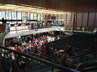 I did lunch with a big group of people I was thrilled to have lunch with at the convention center, including Jackie (who I was thrilled to even see), Gwenda Bond, Liz, Sara Ryan, and Jennifer Laughran. It was a totally laid back affair at the food court, followed by a trip to the only adjoining hotel for coffee and gossip.