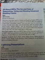 After our presentation ended and we answered questions, I had 15 solid minutes for myself before a lunch date with a friend. I took that time to run to the reading stage in the exhibit hall and listen to Sara Zarr share a bit from Roomies. Since I had to decline a lunch invite with her and a few other authors, it was my one chance to finally see her (or so I thought!). It got me really interested in the book, and I ended up reading it in one sitting when I got home from ALA. It was supremely satisfying.