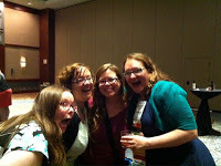 The biggest day at the conference for me was Monday, and it started out with a bang. Sophie, Liz, and I were presenting on "new adult" at 9:15 in the morning. But we'd all managed to get up and get ready earlier than we'd thought, so we were all in the convention center early. I used the time to snag a spot along the wall for the presentation prior to ours on the Tumblarian crew.
