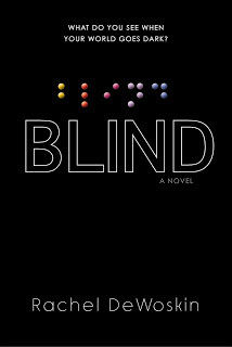 Rachel DeWoskin's Blind cover is doing something that differs in the redesign than all of the rest of the covers in this batch of makeovers: it adds a model to it. The original hardcover is pretty stark -- it's black, with a title that drives the cover, even though the title itself isn't full. It's an unfilled set of letters. Above it are the braille designations and the simple tag line "What do you see when your world goes dark?" You know immediately what the book is about, and the tag line further amplifies that this is a story about a blind character.