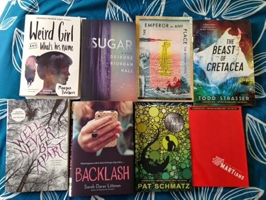 Todd Strasser's The Beast of Cretacea was compared to Moby Dick, which is a dangerous catnip for me. I love Moby Dick. I'm tentative and a little hesitant about picking up Sugar because it's about a fat girl. This could either go very well or very poorly. I want it to be great. I worry I might be let down. Reviews haven't told me much either way. I'll be getting to it sooner, probably, rather than later.