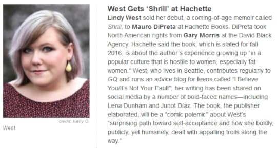 via Buzzfeed4. Lindy West is writing a coming of age memoir called Shrill.