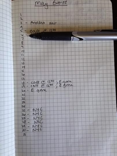 At the beginning of each month, I write out a rough events calendar: