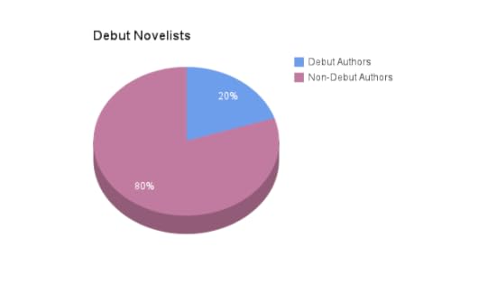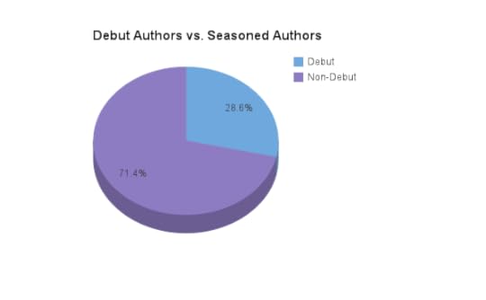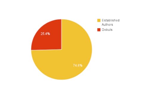 The numbers changed a little bit in 2012, as 20% of the authors were debuts and 80% were more seasoned authors.