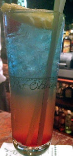 Colin orders a glass of water. I’m sipping one of their signature drinks, the Rainbow. It’s almost too pretty to drink, but I do anyway. It’s so good that I make a mental note to just have one because I 've got a feeling that it’s pretty strong. It doesn't take long for the piano players to recognize Colin and begin playing the theme from the television show Dallas. Colin laughs and tips his hat to them.