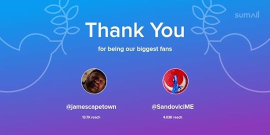 Our biggest fans this week: @jamescapetown, @SandoviciME. Thank you! via https://sumall.com/thankyou?utm_source=twitter&utm_medium=publishing&utm_campaign=thank_you_tweet&utm_content=text_and_media&utm_term=23ed86f611cccca4a0bc28d9