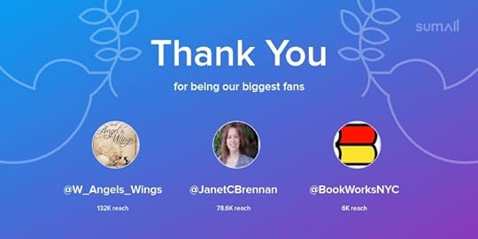 Our biggest fans this week: @W_Angels_Wings, @JanetCBrennan, @BookWorksNYC. Thank you! via https://sumall.com/thankyou?utm_source=twitter&utm_medium=publishing&utm_campaign=thank_you_tweet&utm_content=text_and_media&utm_term=23ed86f611cccca4a0bc28d9