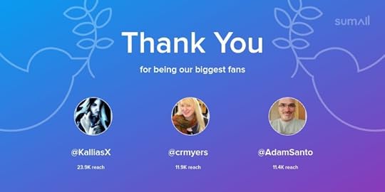 Our biggest fans this week: @KalliasX, @crmyers, @AdamSanto. Thank you! via https://sumall.com/thankyou?utm_source=twitter&utm_medium=publishing&utm_campaign=thank_you_tweet&utm_content=text_and_media&utm_term=23ed86f611cccca4a0bc28d9
