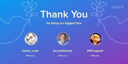 Our biggest fans this week: @paul_cude, @crystalseries, @RCragwall. Thank you! via https://sumall.com/thankyou?utm_source=twitter&utm_medium=publishing&utm_campaign=thank_you_tweet&utm_content=text_and_media&utm_term=23ed86f611cccca4a0bc28d9