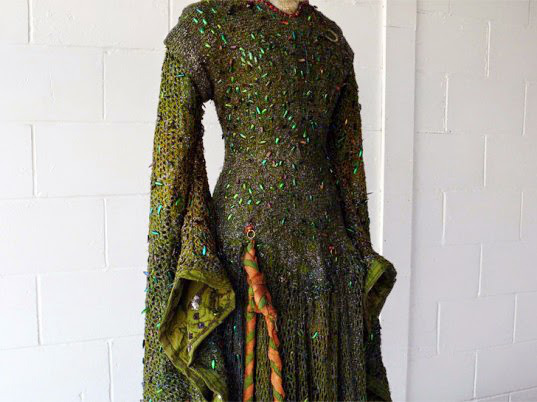 The above dress was worn in 1888 by actress Ellen Terry in the role of Lady MacBeth. It is made of thousands of jewel beetle wings. Quite appropriate for Lady MacBeth, to be draped in thousands of small deaths. Click on the photograph to learn more. Hat tip Morbid Anatomy.