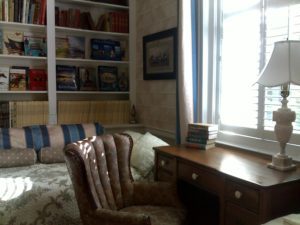 Pictured: the desk in the Jane Austen Room of the Bashford Manor where I once stayed when visiting Memoria Press in Louisville.