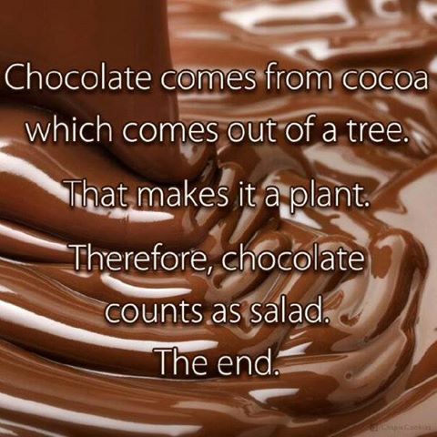 Chocolate is the "salad" of the food world. Yay, chocolate. *spinning a finger in a circle*
