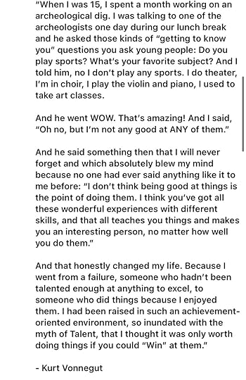 So there you have it: Kurt Vonnegut and I are both encouraging you to try new things, even if you’re not good at them and look more kindly on your failures, which could lead you to amazing creative breakthroughs. Olivia and Elsa would never have seen the light of day if I’d stopped writing because I couldn’t produce a play. What have you set aside that might be worth looking at through this new perspective?