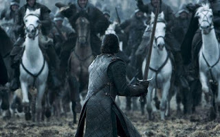 I'm gonna call a spade a spade here. Jonny boy deserved to lose the fight. He should have lost the battle. That whole bit with Rickon was a joke and someone should really have told the boy to zig and most certainly zag. Dumbass! It kinda felt like the Martells (don't get me started), in that the TV show folk had no idea what to do with Rickon so they just murderised him. And then Jon got angry and committed suicide... or at least he really should have. There was no way his cavalry were catching up to him in time.