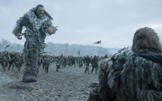 Then the wall of infantry happened and... I think Jon's boys need to learn how to properly utilise a giant. Give the bastard a club, a tree. Something to swing and break the enemy lines. ALSO, he's a thirty feet tall slab of brutish muscles and none of Bolton's boys broke and ran. I've played Warhammer. Terror checks are an arse and once one man turns tail and flees, others soon join in. Jon needs to learn to giant better.... which probably won't happen now because there aren't any more of them.