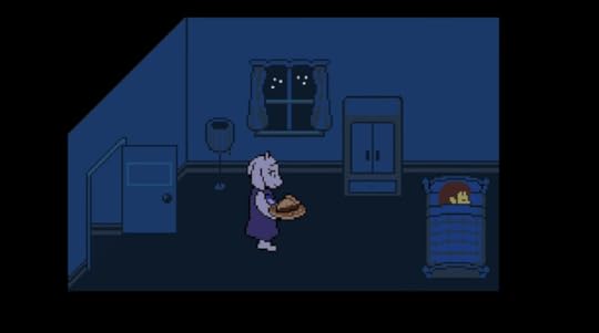 There’s no doubt that Toby Fox’s Undertale relies on the inhumanly selfless portrait of motherhood, but it does so with a purpose (warning that spoilers abound for the game). Early on, after the player-character accidentally falls into the monster world, you meet a momish character named Toriel. Toriel wishes to protect your from all the harm human children face in the monster world, and teaches you that, when you meet a foe, you will have the option to fight (and gain experience points) or to show them mercy by figuring out a narrative puzzle that sorts out that foe’s issues. But the real catch of this revolutionary kind of anti-combat system comes midway through the game, when you are forced to fight Toriel herself as she stands in the way of your progress. Toriel has watched several human children die at the hands of the monster king, Asgore, who seeks revenge on the human world for trapping the monsters underground. She refuses to let you continue in fear that you will die at the king’s hand, and you in turn are left with a crucial choice.