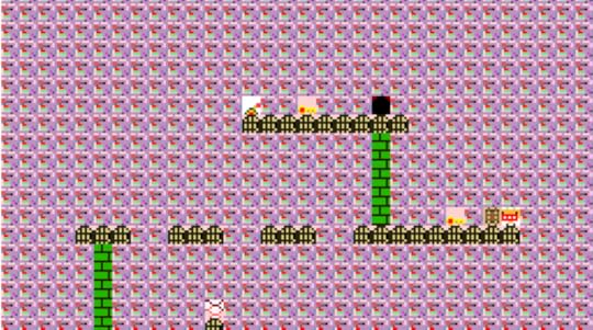 When the game is started, all the tiles in the images have been shuffled and mixed around out of their memory addresses, and each level looks like chaos, set to the soundtrack of the same endless loop of whichever notes the screen froze between. The idea of the game is for players to telepathically enter the internal NES Picture Processing Unit to put images back in their original memory addresses.