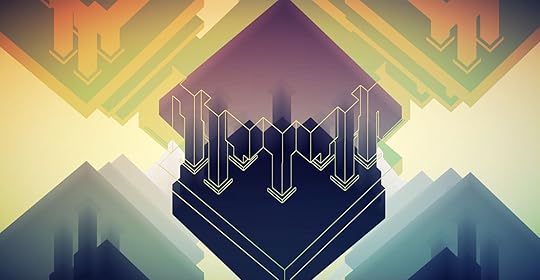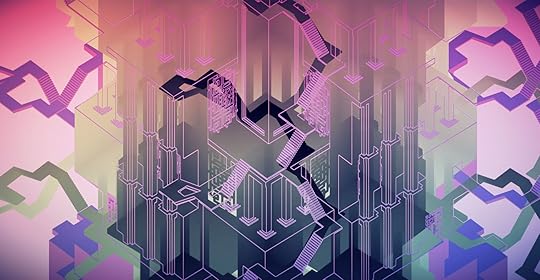 Other times, the camera is zoomed-in, allowing space for a single architectural expression to gain its own character. An endless vertical staircase turned on its side becomes a criss-crossing pattern that wouldn't be amiss among Islamic art. A temple-like structure complete with a triangular roof and support columns sits with importance at the center of the frame surrounded by shadow versions of itself. Suddenly, these angles and shapes that previously had their individuality overshadowed by being part of a mass of virtual carved stone, are randomly chosen as specialized purveyors of architectural beauty. And, boy, how they perform when put on the spot.