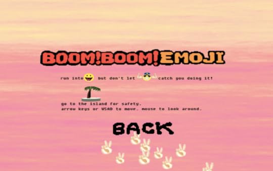 As such, Boom!Boom!Emoji is my kind of game. It is a neon world populated with floating emojis and palm trees on islands. You try to make the smiley face emoji explode by running into them. If you succeed, they explode into firework-like constellations of flame emoji, which is really quite pleasing. Of course, this being a game and not just a form of anti-social wish fulfillment, there are some impediments to your quest to blow up all the smiley faces. More specifically, there are policemen, rendered as smiley faces with serious hats and biceps worthy of Popeye. Collide with a policeman and is game over for you. (That, as best I can tell, is the closest this work of art comes to imitating life.)