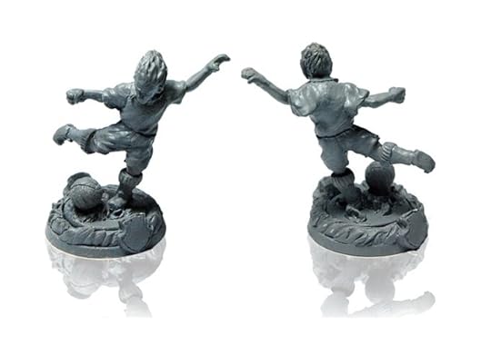Two years after the release of a Spanish-language edition, Soccer City’s English release will invite players to engage in turn-based gameplay on a board made up of hexagons. Those hexagons match the shape of the pedestals on which twenty-two plastic statuettes—crosses between Subboteo tabletop football figurines and toy soldiers—sit. The player on offense goes first, picking one of the cards in her hand that corresponds with an action. The defensive player follows suit. Back-and-forth they go. With 165 cards, additional external factor cards, tactical sheets listing defensive and attacking actions, and a referee’s dice that can be used to mete out disciplinary actions, Soccer City offers plenty of options. You can dribble and weave your way through traffic, overcome challenges, shoot, and potentially score.