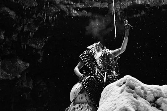"V" HS Project, as Ob Rey calls it, comprises five series of photos: "The Lavas' Whisper," "Submarine Wings and Seeds," "Thousands of Njord's Feathers," "Shadows of Bedrock Children," and "Unknown Ashes - Unknown Voices." Each of these capture a different nightmarish figure in the throes of its new-found existence. Despair and terror are found in their faceless forms, but the influence of Parisian haute couture (which Ob Rey grew up around) is visible in the trailing black ribbons, resembling gowns and elaborate head pieces.