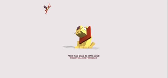 Then, you see the direction to "move the fan and press to make wind," which, "the lion will surely appreciate." Mr. Chill certainly does appreciate it. His rounded mouth shoots upward into a wide grin and he closes his cat eyes in sublime pleasure. His mane, made out of a low poly, origami-like material, flaps in the wind. Though there's no sound, you can practically hear him cooing his satisfaction through the screen. You can even make Mr. Chill dance a little fan dance in celebration of the cooling effect, making his little butt wiggle in place.