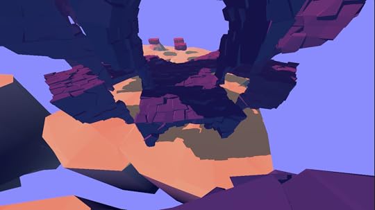 Johns incorporated these 20-year-old design lessons, which were abandoned long ago in favor of realism, into GIBSON HYPERDRIVE. He kept twisting pillars, hanging them on the edge of sky islands, adding etches and nooks, half-eroded castles sitting on mountains, stacks of arches. The results speak for themselves. These are the chunks with which his systems will piece together entire levels as is the case in Spelunky. It's all very sensible, designed, and planned out. It is the serious side of Johns that spoke to me. But what it's setting up is for that moment-to-moment expression that Johns so easily slips into. He wants his players to embrace that, too, as they fly at hyper speed through his carnival of architecture, living in two-second increments of absolute hyperbole.